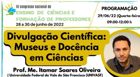 Venha conferir a participação de nosso doutorando no III Congresso Nacional de Ensino de Ciências e Formação de Professores. A palestra será transmitida pelo canal do youtube da Faculdade de Educação da UFCAT, dia 29/06 às 09:00 horas, acesse o link. …Leia +
