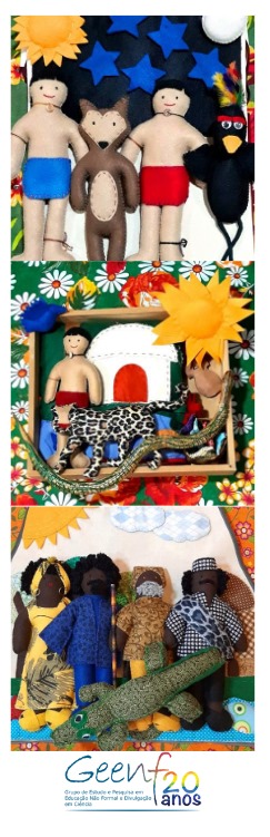 O GEENF tem a alegria de apresentar os kits de contação de história adquiridos com a parceria entre o MEB, GEENF e produzidos pela Emabrinq para serem usados em contextos formaise não formais de educação. São 5 histórias nas modalidades de avental e caixa de história. São elas “O Índio, o Céu e as Estrelas”, “Dona Raposa e os Peixes”, “Abdu, o Crocodilo e o Homem Cego” e “Duas Mulheres e o Céu”.